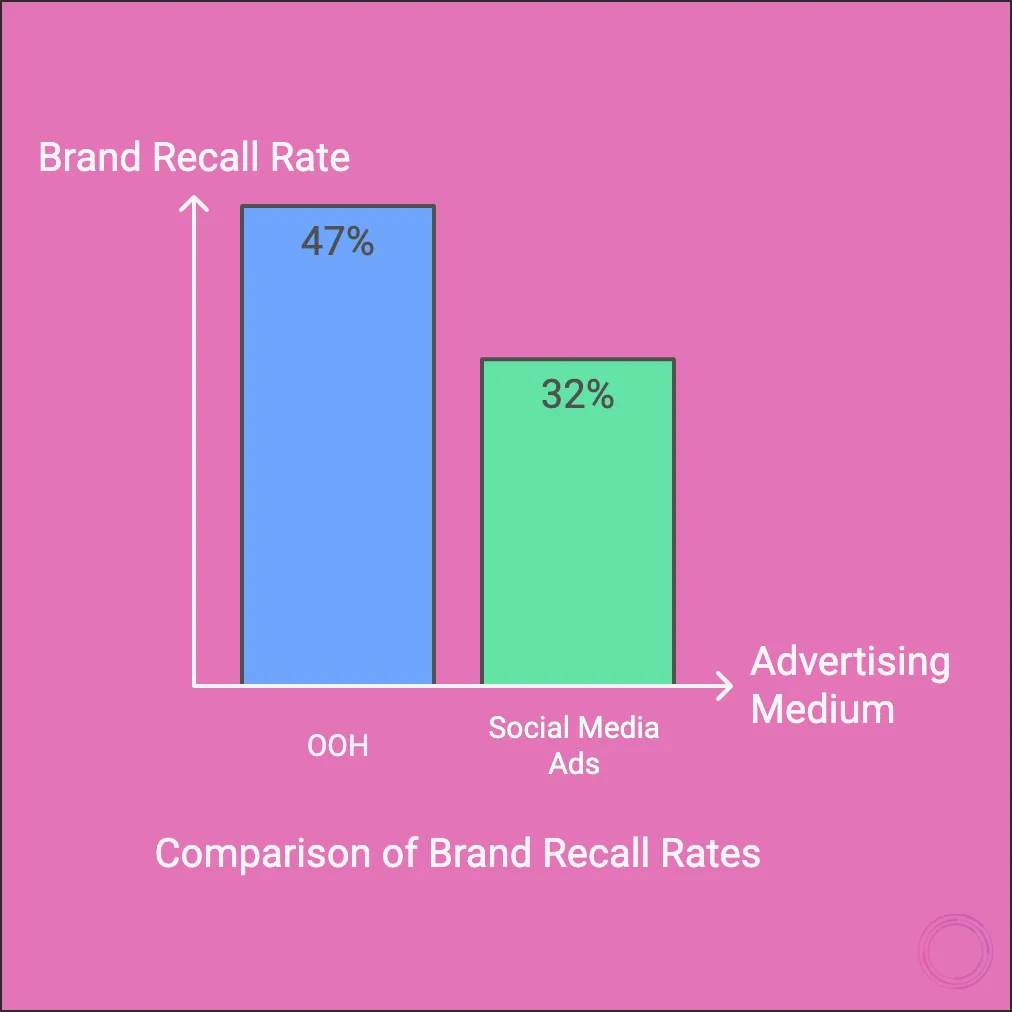 - Brand recall for OOH is 47% higher than for social media ads. (Nielsen, “OOH Effectiveness Study,” 2024)